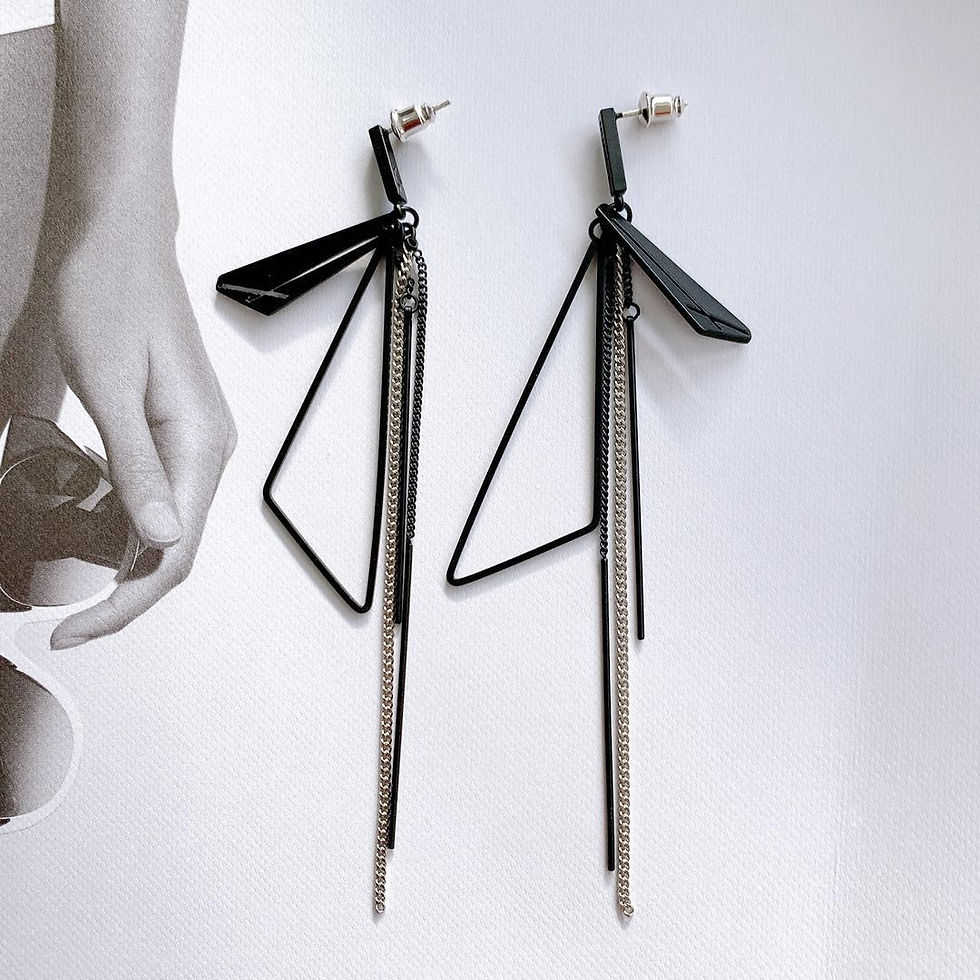 Black Feather and Tassel Asymmetric Earrings - MOOII